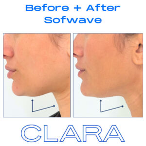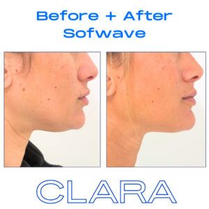 Below are two before-and-after images demonstrating the effect of Sofwave™ on patients at CLARA Dermatology.
